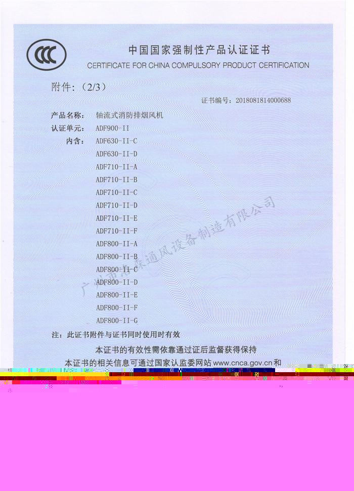 • CCCF證書-洛森風機180314軸流式消防排煙風機ADF1400-II(ADF1000-II-C~ADF1000-II-D)附件
